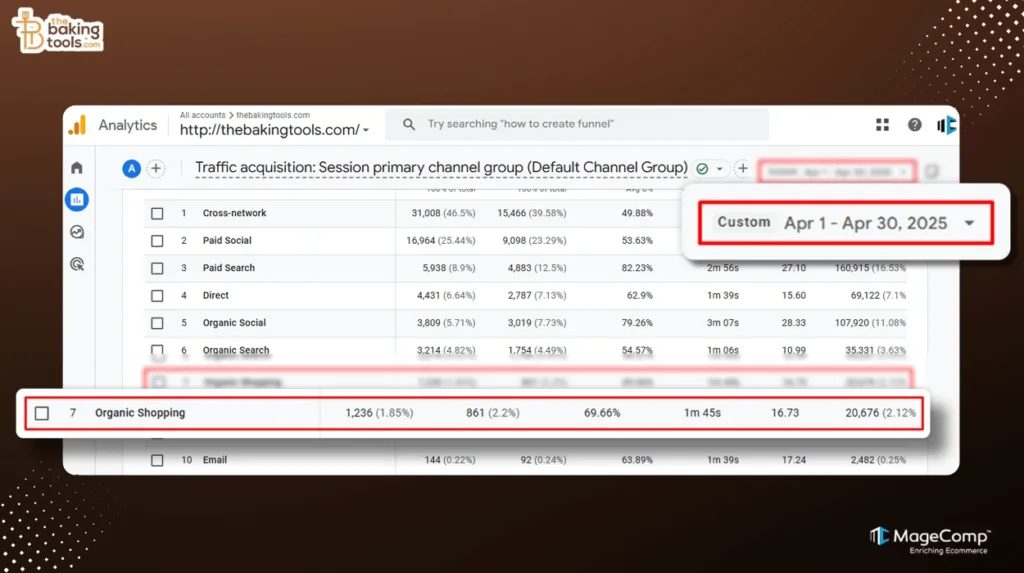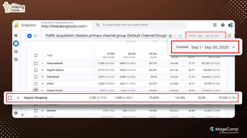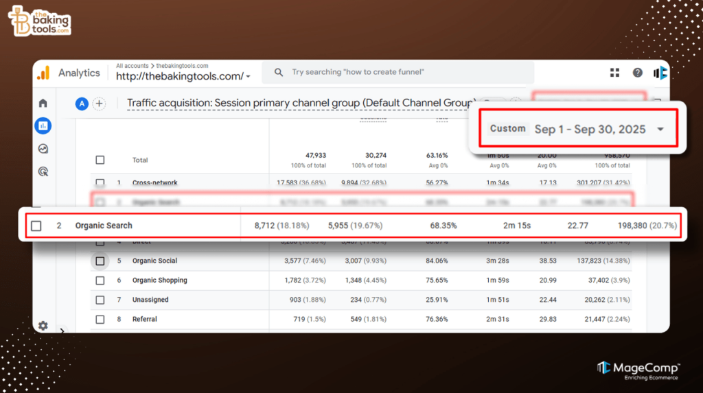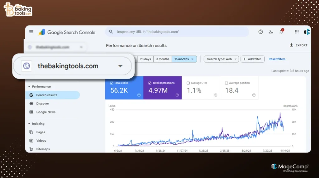 The Baking Tools enjoyed a bump in visibility in search and organic visitors increased by ~139% – ~3200 in April 2025 to ~8800 in September 2025 in only a span of 5 months.