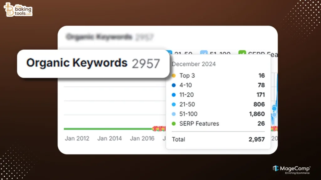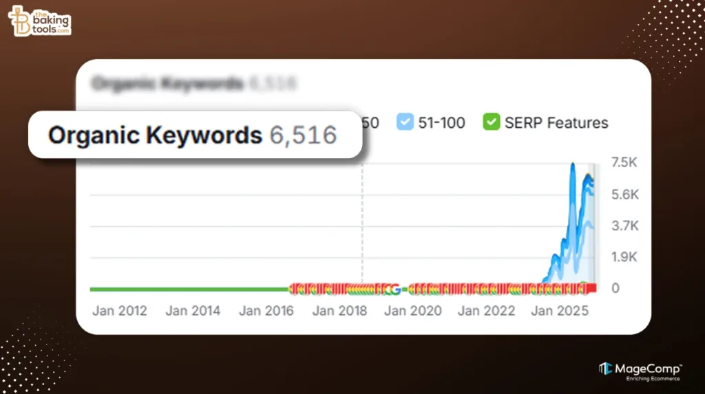 MageComp developed and implemented a comprehensive and regular content marketing plan, producing regular blog posts on baking trends, products, and guidebooks for educational content. This increased keyword rankings and improved the overall authority of the brand in the baking niche.