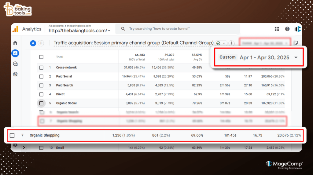 Working with the client, MageComp developed an organized and measurable SEO strategy, including Keyword Research, Technical SEO adjustments, and On-Page Optimization. Then, we engaged the business with a content marketing plan and some internal linking to assist with driving traffic that was specific to their market and to rank for some competitive baking terms.