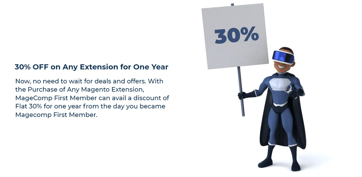 - Flat 30% for one year on the purchase of Magento 2 Extensions