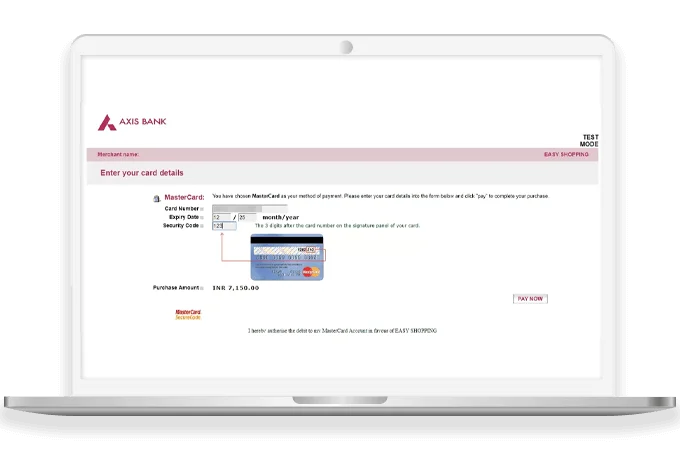 Secure payment page to provide enhanced security to keep the customer's data safe with the help of axis payment gateway method.