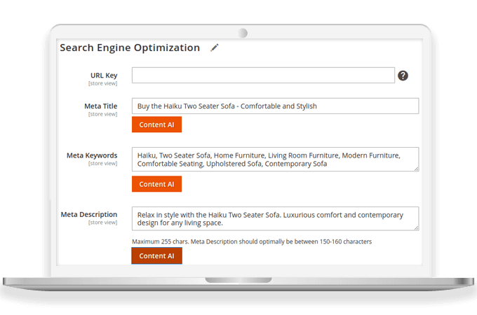 AI Content Generator module for Magento 2 generates AI-curated & high quality SEO-friendly meta titles, keywords and descriptions. It helps acquire higher rankings on search englines like Google, Bing, Yahoo! etc.