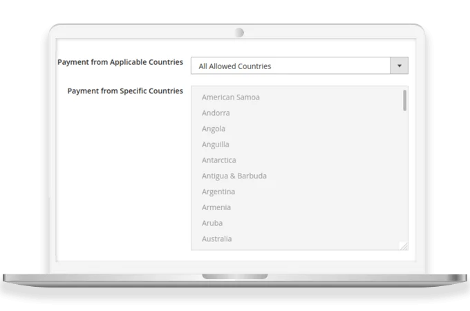 Clave Payment gateway extension for Magento 2 stores allows the admin to restrict specific countries to utilize the payment method.