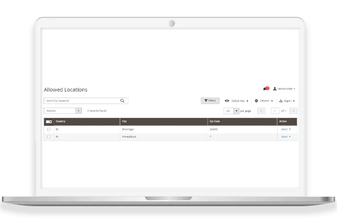 Magento 2 Restrict Order Extension provides an option to modify the permitted locations or zip codes from the Admin Account section.